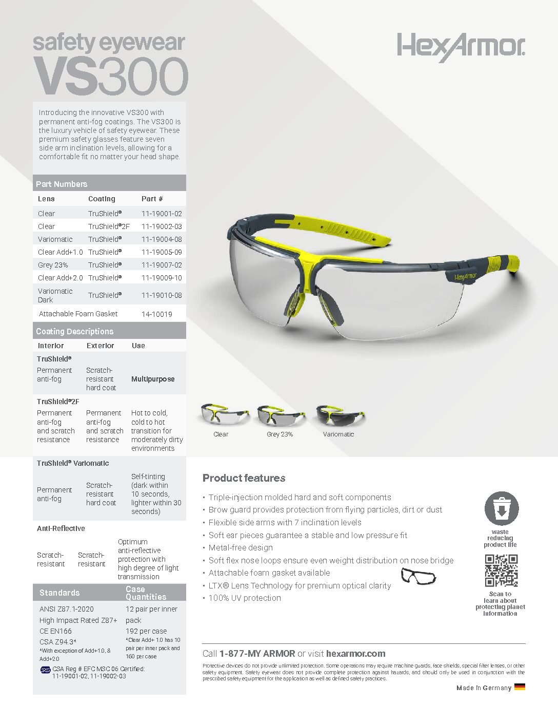 • Compliant with ANSI Z87.1.2020, High Impact Rated Z87+, CE EN166, and CSA Z94.3 (Add +1.0 & +2 are not compliant with CSA Z94.3)